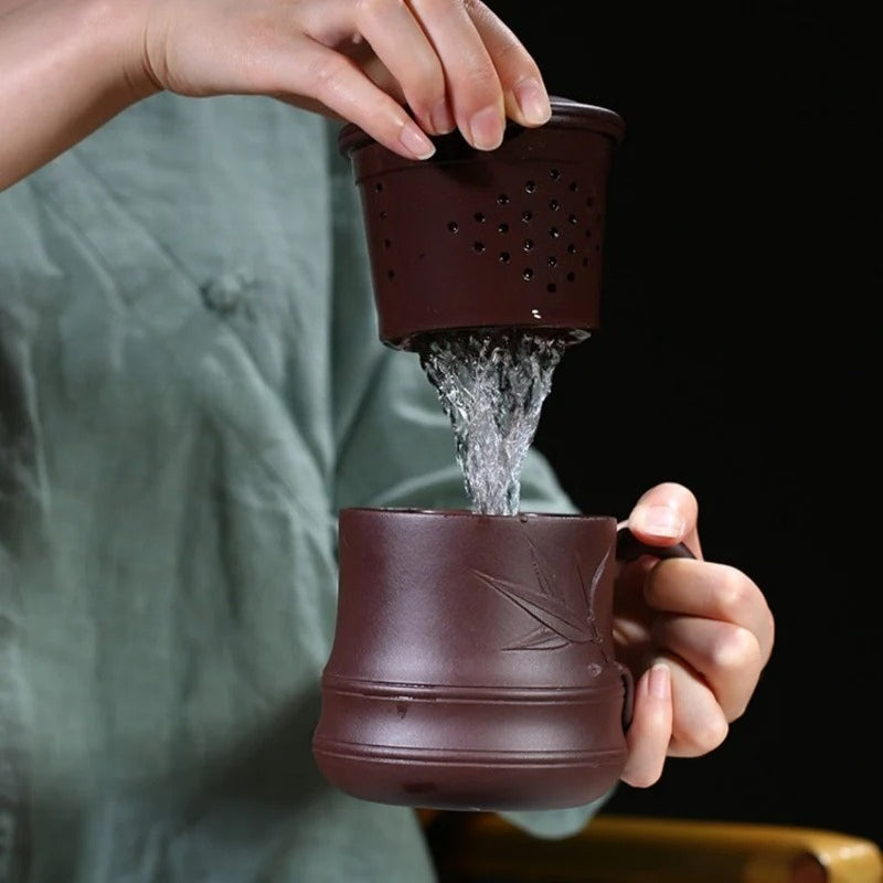 【Product】Yixing Zisha Tea Mug with Filter [Bamboo] 5pcs Set