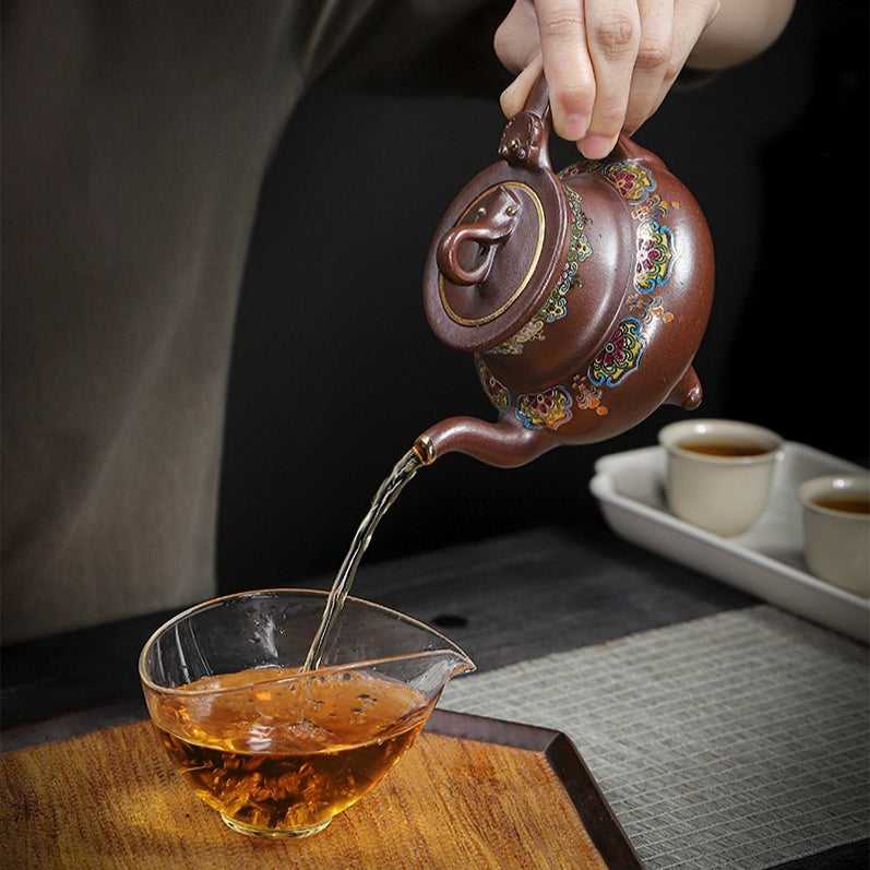 【Artesanía】Totalmente hecho a mano - Las teteras Yixing totalmente hechas a mano se elaboran sin moldes, dando forma a la arcilla completamente a mano mediante el golpeado de planchas de arcilla y su unión. Cada tetera es una obra de arte única, que requiere una inmensa cantidad de tiempo y habilidad. Los beneficios son significativos: la estructura compacta de la arcilla optimiza la red de doble poro, mejorando en gran medida el sabor y la complejidad aromática del licor de té con el tiempo. No es solo una tetera, sino una pieza de arte coleccionable, que encarna la más alta artesanía del artesano.