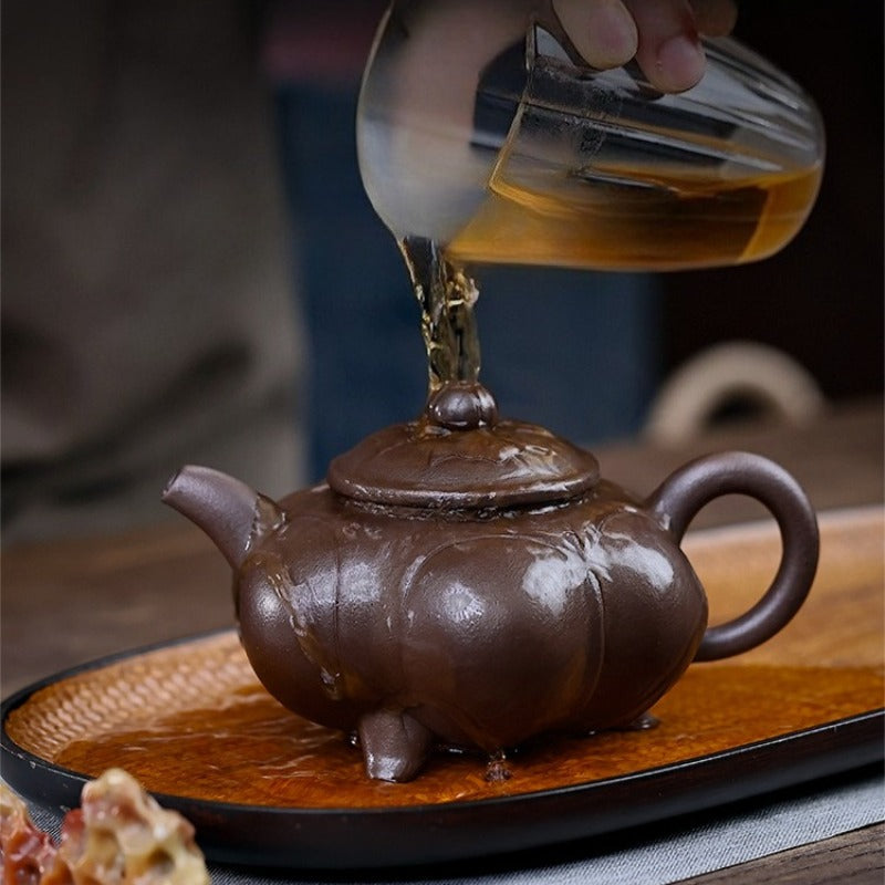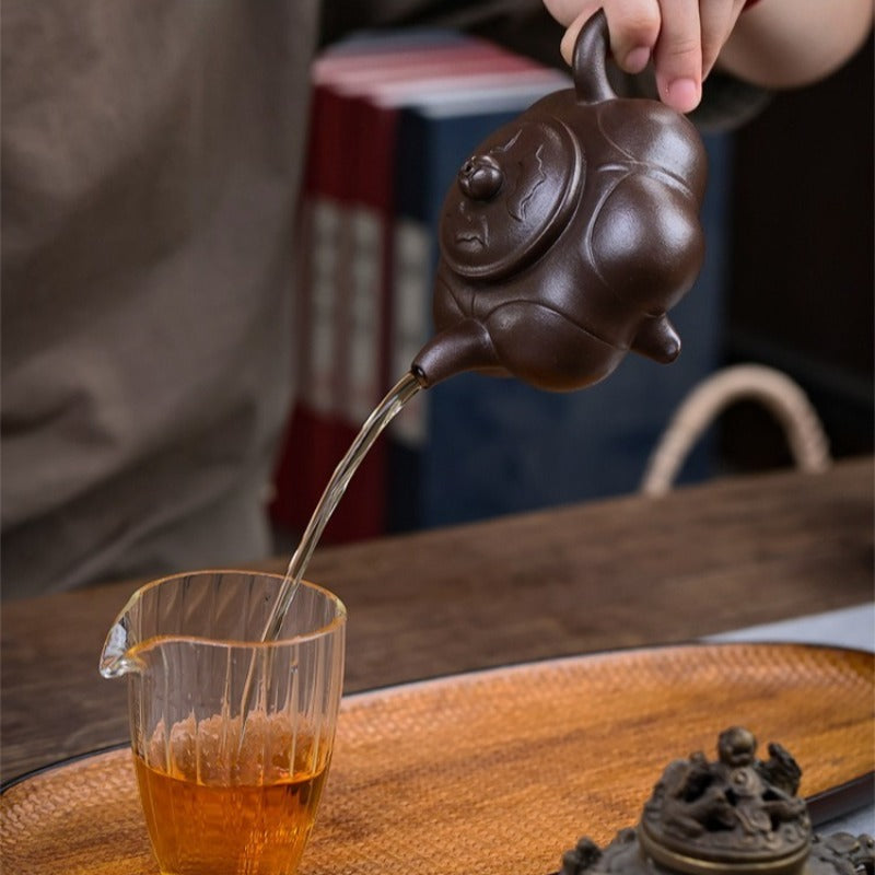 【Artesanía】Totalmente hecho a mano - Las teteras Yixing totalmente hechas a mano se elaboran sin moldes, dando forma a la arcilla completamente a mano mediante el golpeado de planchas de arcilla y su unión. Cada tetera es una obra de arte única, que requiere una inmensa cantidad de tiempo y habilidad. Los beneficios son significativos: la estructura compacta de la arcilla optimiza la red de doble poro, mejorando en gran medida el sabor y la complejidad aromática del licor de té con el tiempo. No es solo una tetera, sino una pieza de arte coleccionable, que encarna la más alta artesanía del artesano.