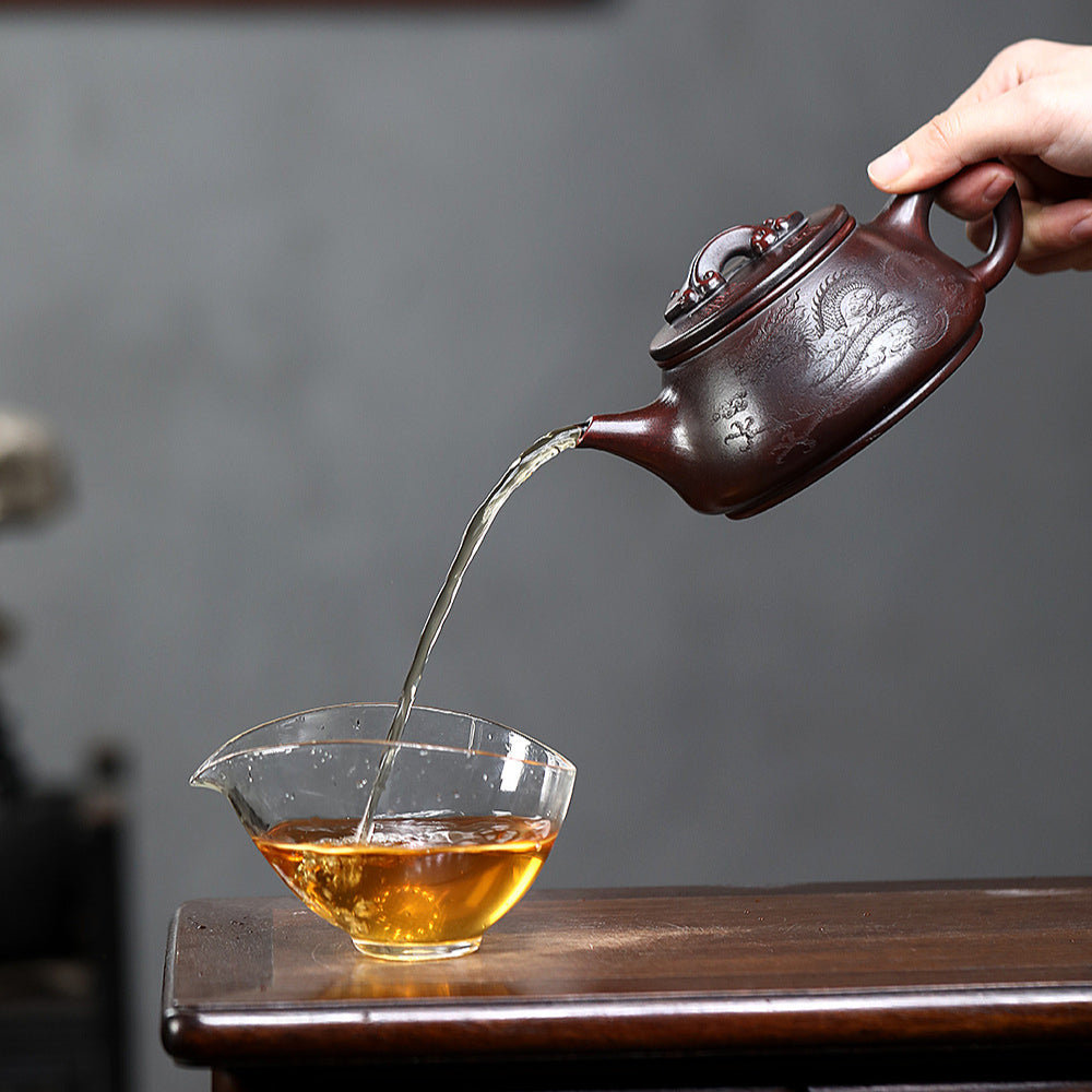 【Artesanía】Semi-artesanal: Las teteras Yixing semi-artesanales se moldean inicialmente con moldes y luego son refinadas meticulosamente por artesanos mediante detalles, pulido y tallado artesanales. Esta técnica garantiza una forma consistente, incorporando la habilidad y la estética del artesano, logrando un equilibrio entre eficiencia y maestría. Entre sus ventajas se incluye una excelente transpirabilidad gracias a la exclusiva estructura de doble poro de la arcilla zisha, que realza el aroma del té y lo mantiene fresco incluso durante la noche. Más asequibles que las versiones totalmente artesanales, estas teteras conservan el encanto y la practicidad de la artesanía, lo que las hace ideales para la preparación diaria de té.