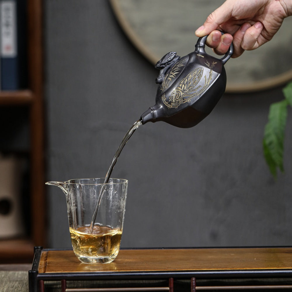 【Artesanía】Semi-artesanal: Las teteras Yixing semi-artesanales se moldean inicialmente con moldes y luego son refinadas meticulosamente por artesanos mediante detalles, pulido y tallado artesanales. Esta técnica garantiza una forma consistente, incorporando la habilidad y la estética del artesano, logrando un equilibrio entre eficiencia y maestría. Entre sus ventajas se incluye una excelente transpirabilidad gracias a la exclusiva estructura de doble poro de la arcilla zisha, que realza el aroma del té y lo mantiene fresco incluso durante la noche. Más asequibles que las versiones totalmente artesanales, estas teteras conservan el encanto y la practicidad de la artesanía, lo que las hace ideales para la preparación diaria de té.