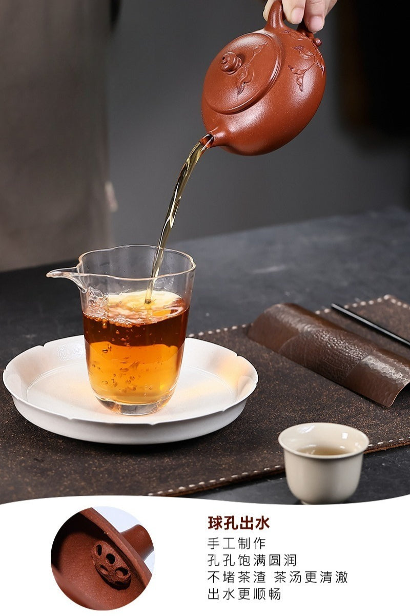 Théière Yixing Zisha entièrement faite à la main [Chun Hua] (Zhu Sha Zhu Ni - 180 ml)