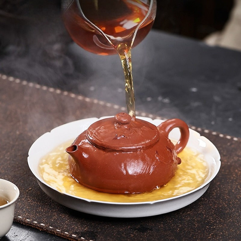 【Savoir-faire】 Entièrement fait main - Les théières Yixing sont fabriquées sans moule, façonnées à la main par le martelage et l'assemblage de plaques d'argile. Chaque théière est une œuvre d'art unique, exigeant un temps et un savoir-faire considérables. Ses avantages sont considérables : la structure compacte de l'argile optimise le réseau de doubles pores, améliorant considérablement le goût et la complexité aromatique de la liqueur de thé au fil du temps. Plus qu'une simple théière, c'est une œuvre d'art de collection, symbole du savoir-faire artisanal le plus raffiné.