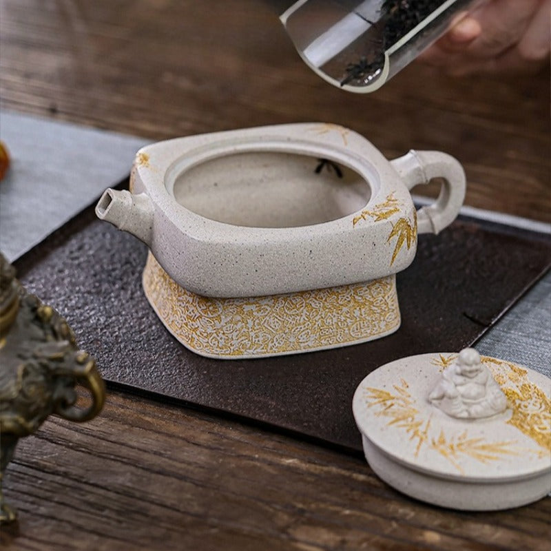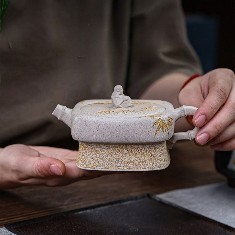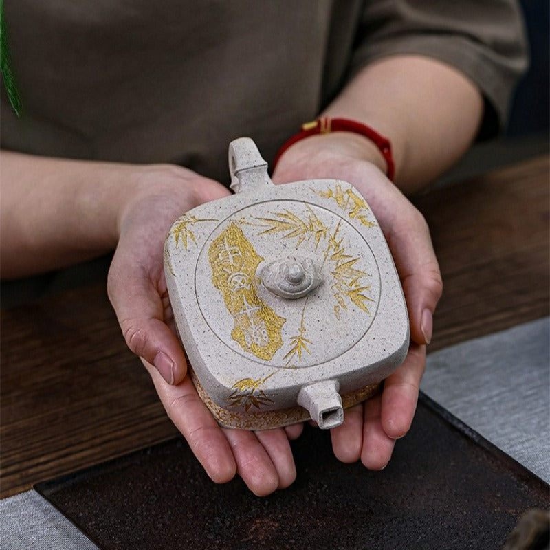 【Savoir-faire】Entièrement fabriquées à la main - Les théières Yixing sont entièrement façonnées à la main, sans moule, en martelant des plaques d'argile et en les assemblant. Chaque théière est une œuvre d'art unique, fruit d'un travail minutieux et d'une grande habileté. Les avantages sont considérables : la structure compacte de l'argile optimise le réseau de double porosité, ce qui améliore significativement le goût et la complexité aromatique du thé au fil du temps. Plus qu'une simple théière, c'est une pièce de collection, un véritable chef-d'œuvre du savoir-faire artisanal.