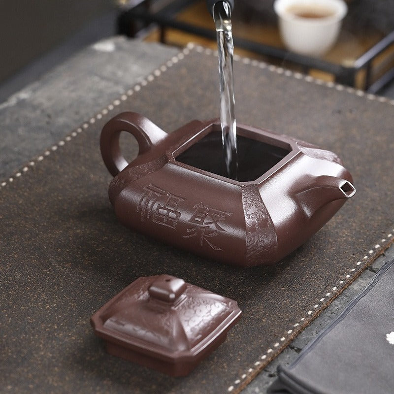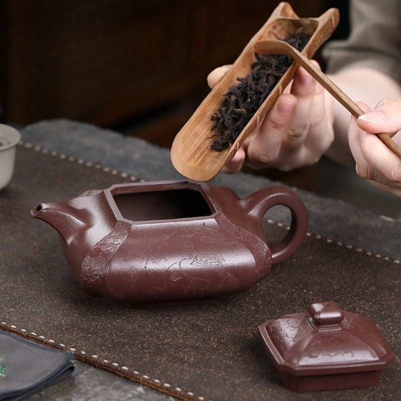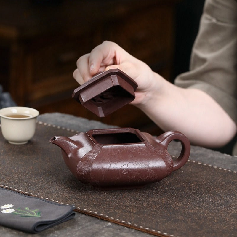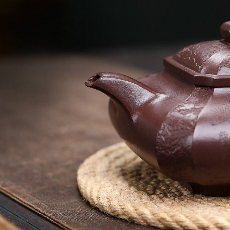 【Savoir-faire】 Entièrement fait main - Les théières Yixing sont fabriquées sans moule, façonnées à la main par le martelage et l'assemblage de plaques d'argile. Chaque théière est une œuvre d'art unique, exigeant un temps et un savoir-faire considérables. Ses avantages sont considérables : la structure compacte de l'argile optimise le réseau de doubles pores, améliorant considérablement le goût et la complexité aromatique de la liqueur de thé au fil du temps. Plus qu'une simple théière, c'est une œuvre d'art de collection, symbole du savoir-faire artisanal le plus raffiné.
