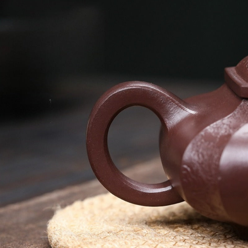 【Présentation】Cette théière magistrale est forgée à partir d'argile Zisha de Yixing authentique et non mélangée, issue des mines d'origine. Réputée pour sa richesse en minéraux et sa structure unique à double pores, cette argile offre des performances exceptionnelles : elle respire doucement pendant l'infusion pour adoucir les tanins du thé et en extraire pleinement les nuances. Au fil du temps, la théière se patine naturellement, développant une riche patine qui fait de chaque pièce un héritage unique. Pour le collectionneur averti, elle offre une expérience d'infusion inégalée, véritable hommage à l'art du thé.