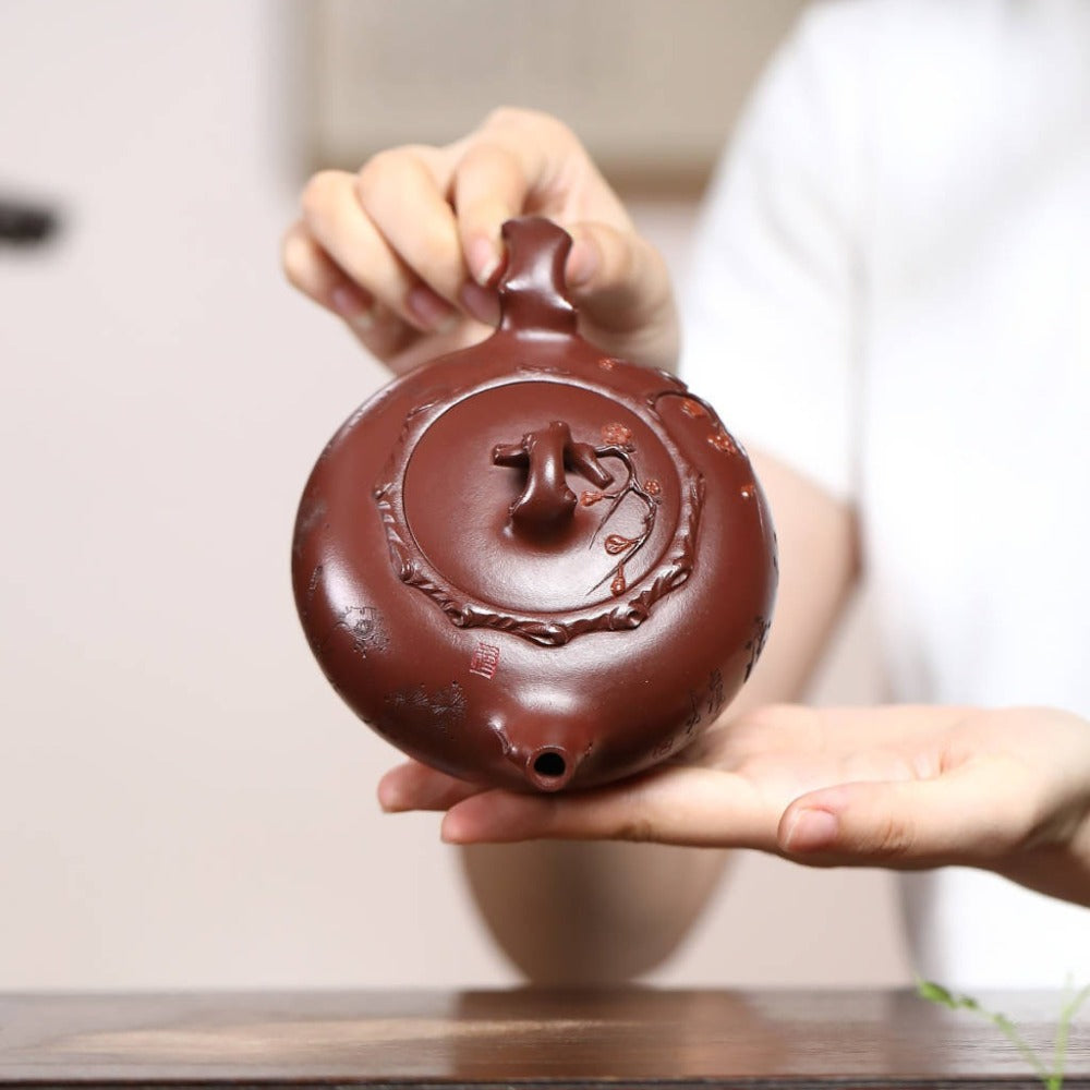 【Introduction】Cette théière d'exception est forgée à partir d'argile Zisha authentique et pure de Yixing, extraite des carrières d'origine. Réputée pour sa richesse en minéraux et sa structure unique à double porosité, cette argile offre des performances exceptionnelles : elle laisse respirer délicatement le thé pendant l'infusion, adoucissant ainsi ses tanins et révélant pleinement ses arômes subtils. Au fil du temps, la théière se patine naturellement, acquérant une riche patine qui fait de chaque pièce un objet unique et précieux. Pour le collectionneur averti, elle offre une expérience d'infusion incomparable, véritable hommage à l'art du thé.