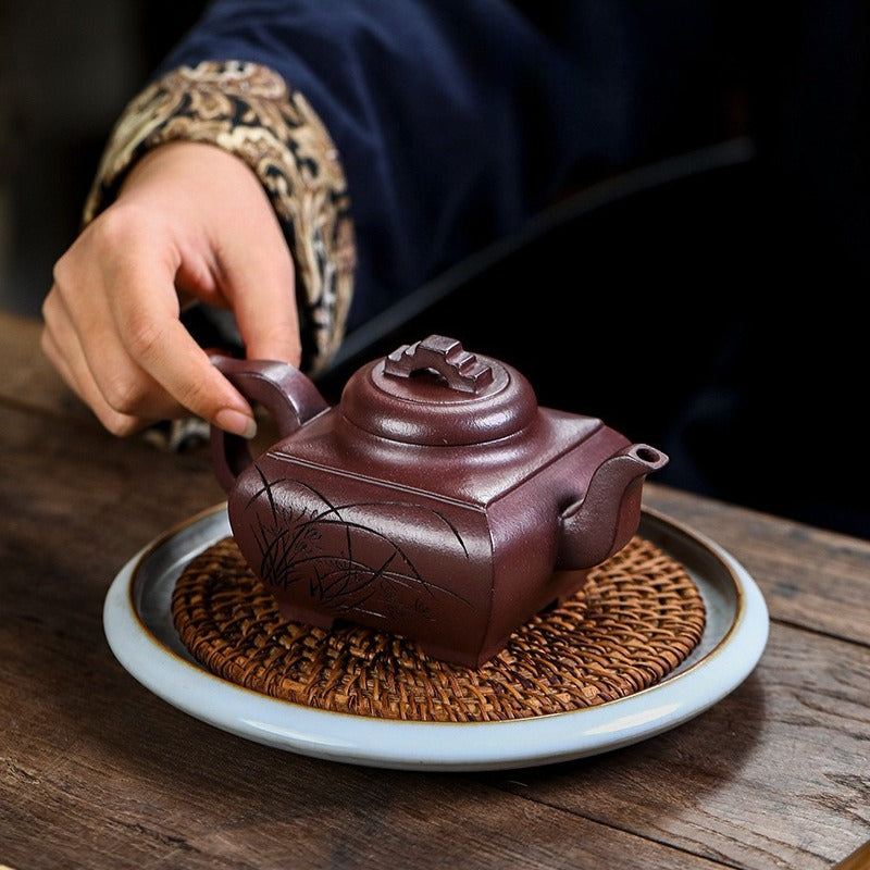 【Savoir-faire】 Entièrement fait main - Les théières Yixing sont fabriquées sans moule, façonnées à la main par le martelage et l'assemblage de plaques d'argile. Chaque théière est une œuvre d'art unique, exigeant un temps et un savoir-faire considérables. Ses avantages sont considérables : la structure compacte de l'argile optimise le réseau de doubles pores, améliorant considérablement le goût et la complexité aromatique de la liqueur de thé au fil du temps. Plus qu'une simple théière, c'est une œuvre d'art de collection, symbole du savoir-faire artisanal le plus raffiné.