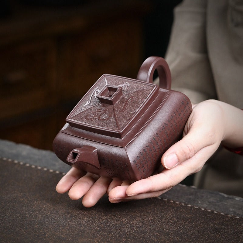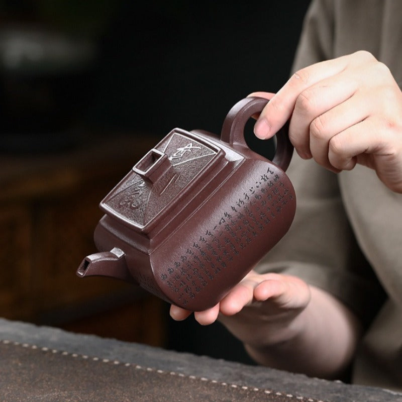Théière Yixing Zisha entièrement faite à la main [Sifang Jun Zheng] (Tian Qing Zi Ni - 500 ml)