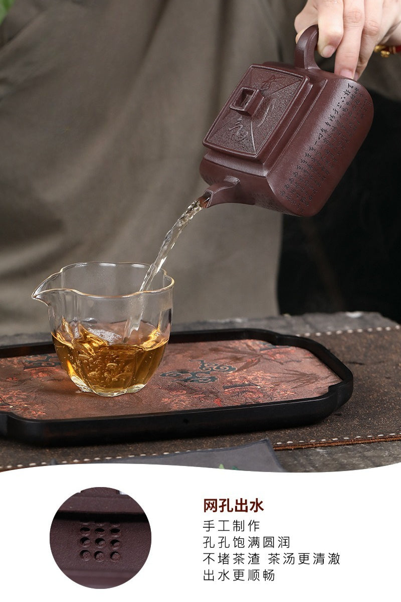 【Savoir-faire】 Entièrement fait main - Les théières Yixing sont fabriquées sans moule, façonnées à la main par le martelage et l'assemblage de plaques d'argile. Chaque théière est une œuvre d'art unique, exigeant un temps et un savoir-faire considérables. Ses avantages sont considérables : la structure compacte de l'argile optimise le réseau de doubles pores, améliorant considérablement le goût et la complexité aromatique de la liqueur de thé au fil du temps. Plus qu'une simple théière, c'est une œuvre d'art de collection, symbole du savoir-faire artisanal le plus raffiné.