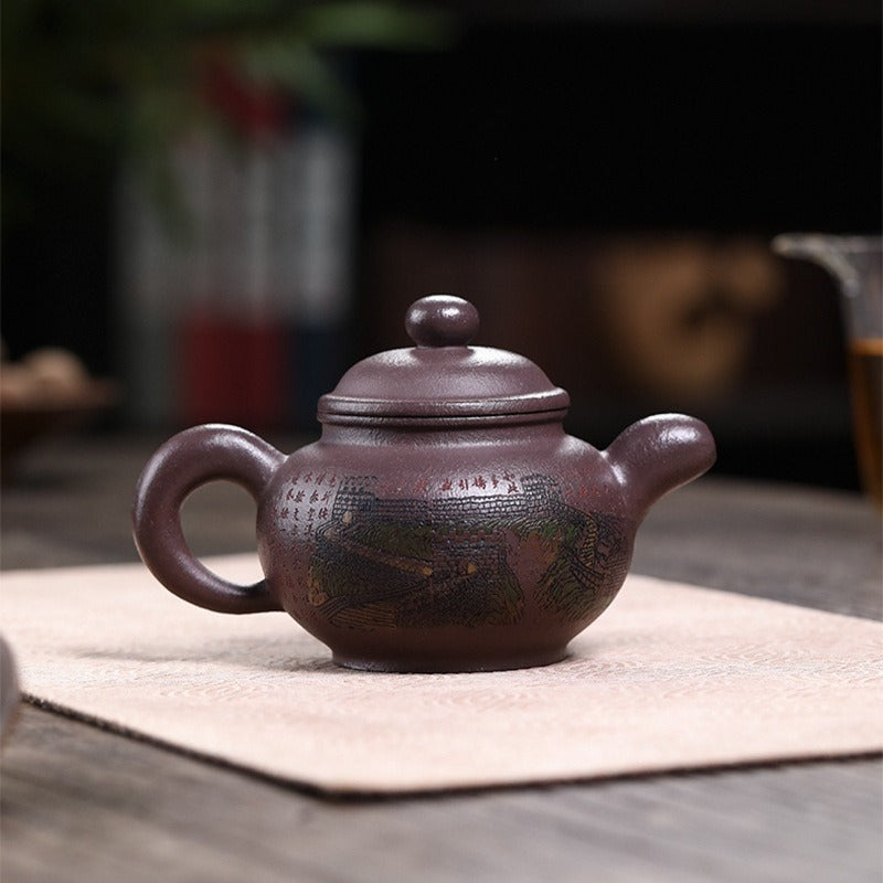 Théière Yixing Zisha entièrement faite à la main [La Grande Muraille] (30 Mu Jinsha Zi Ni - 300 ml)