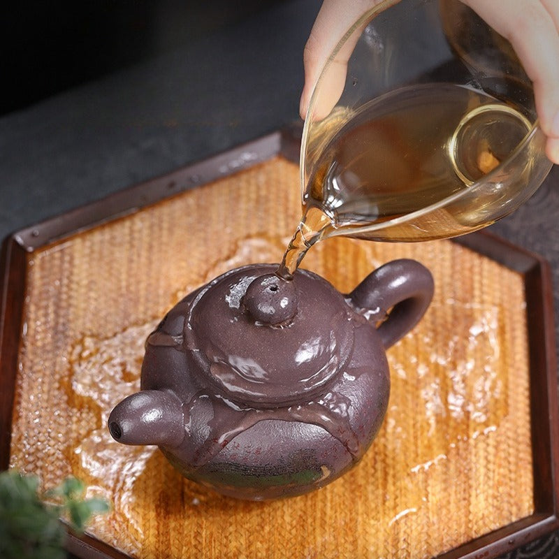 【Savoir-faire】 Entièrement fait main - Les théières Yixing sont fabriquées sans moule, façonnées à la main par le martelage et l'assemblage de plaques d'argile. Chaque théière est une œuvre d'art unique, exigeant un temps et un savoir-faire considérables. Ses avantages sont considérables : la structure compacte de l'argile optimise le réseau de doubles pores, améliorant considérablement le goût et la complexité aromatique de la liqueur de thé au fil du temps. Plus qu'une simple théière, c'est une œuvre d'art de collection, symbole du savoir-faire artisanal le plus raffiné.