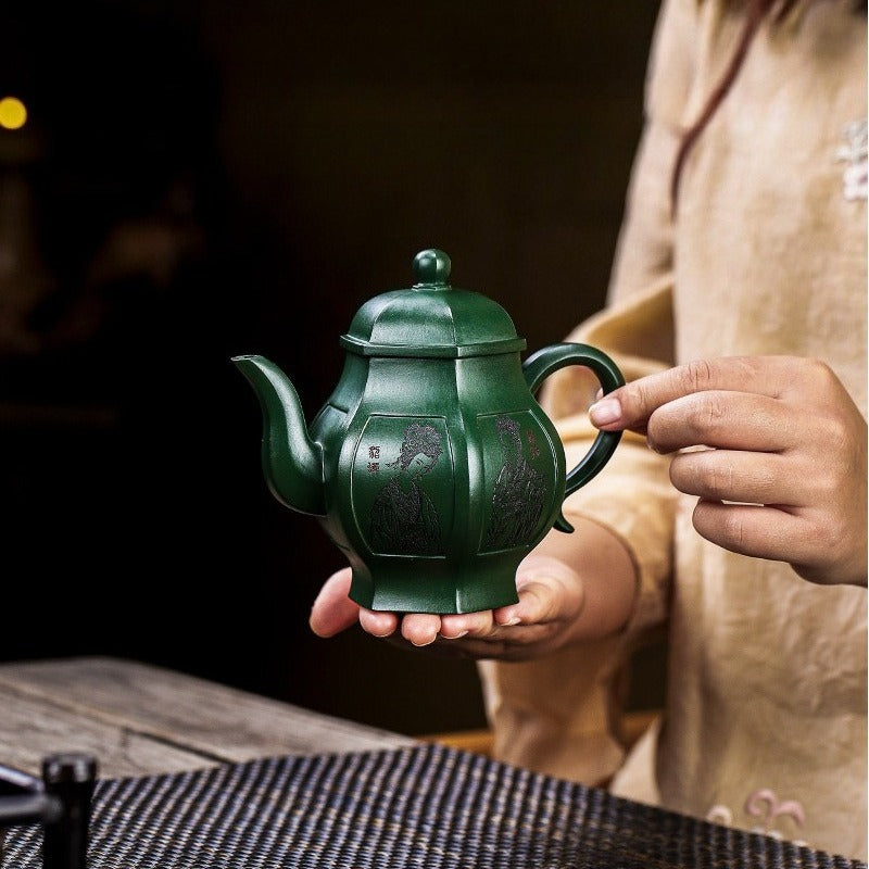 Théière Yixing Zisha entièrement faite à la main [Yitai Wan Qian] (Feicui Lu Ni - 300 ml)