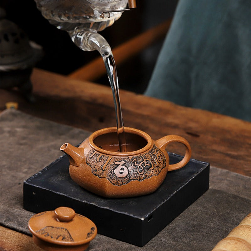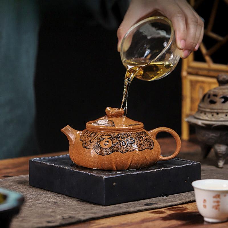 【Introduction】Forged in the legendary kilns of Yixing, this exquisite teapot embodies a ceramic legacy spanning centuries. Each piece is meticulously shaped and finished by hand by master artisans, ensuring no two are exactly alike. The use of pure, aged Zisha clay is paramount; its unique properties work in harmony with tea, mellowing its character and unlocking its deepest, most authentic flavors for a taste of living history.