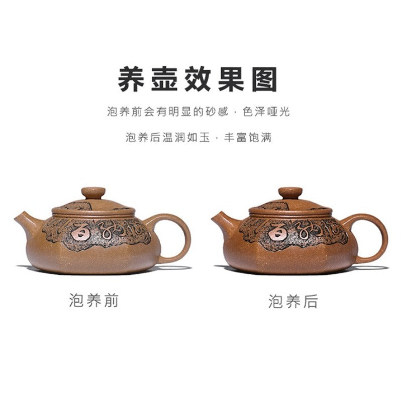 【Craftsmanship】Full handmade - Fully handmade Yixing teapots are crafted without any molds, shaped entirely by hand through pounding clay slabs and piecing them together. Each pot is a unique artwork, requiring immense time and skill. The benefits are significant: the compact clay structure optimizes the double-pore network, greatly enhancing tea liquor's taste and aromatic complexity over time. It's not just a teapot but a collectible art piece, embodying the artisan's highest craftsmanship.