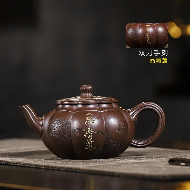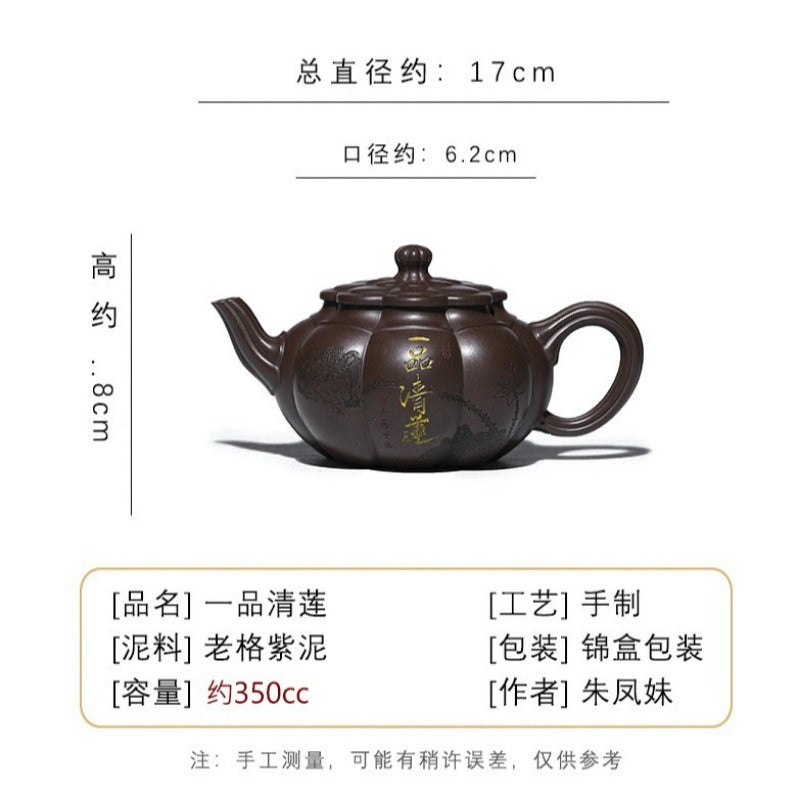 Full Handmade Yixing Zisha Teapot [Yipin Qing Lian] (Lao Ge Zi Ni - 350ml)