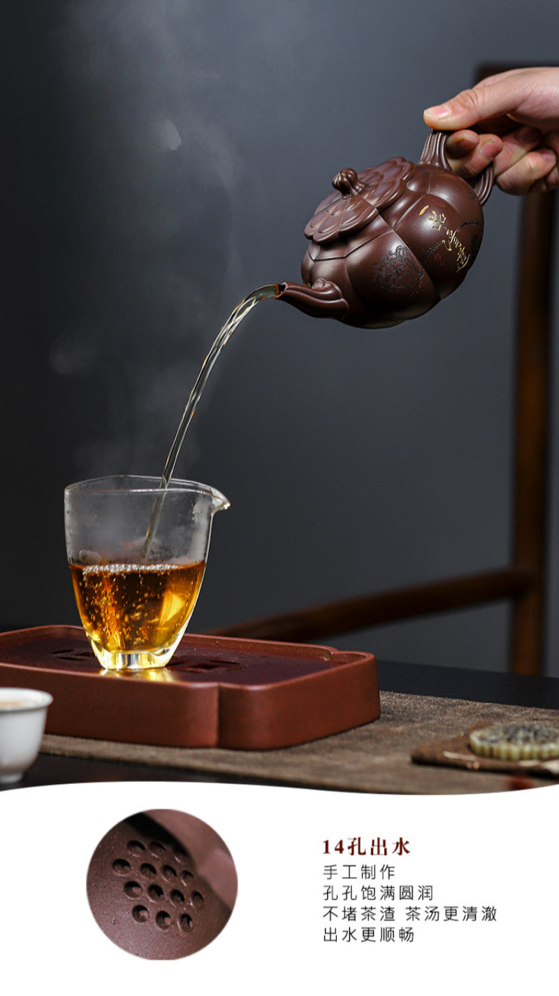 Thank you for your interest in our handcrafted Zisha teaware. Each piece is individually formed by the artisan’s hands, going through multiple stages—kneading, shaping, drying, carving, and kiln-firing—a process filled with life and subtle variations.