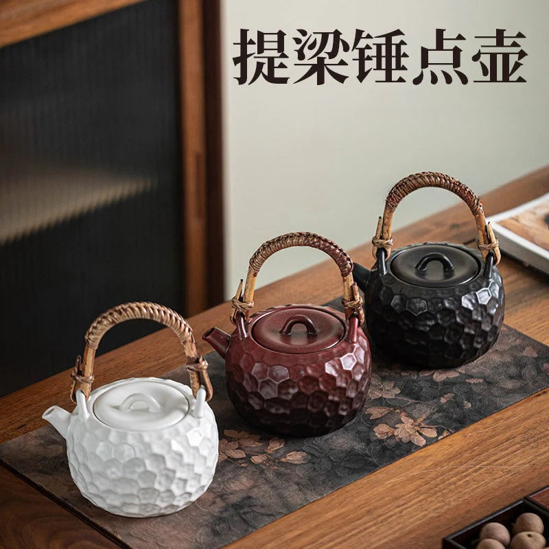 Retro Ceramic Direct Fire Teapot [Tiliang Hammer Pattern Pot] 600ml