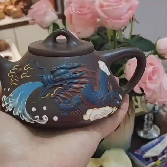 全手工宜兴紫砂茶壶 [堆龙子冶石瓢壶] (老紫泥 - 350ml)