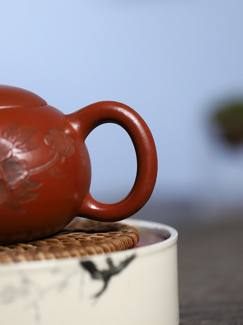 【工艺】半手工制作 - 半手工紫砂壶采用模具初步成型,再由匠人全手工精修细节、明针抛光及刻绘装饰。这种工艺既保证了器型的规整度,又融入了匠人的个人技艺与审美,实现了效率与艺术性的平衡。其好处在于:紫砂双气孔结构带来优异透气性,能激发茶香且隔夜不馊;价格较全手工作品更亲民,同时保持了手工壶的韵味与实用性,是茶人日常使用的理想选择。