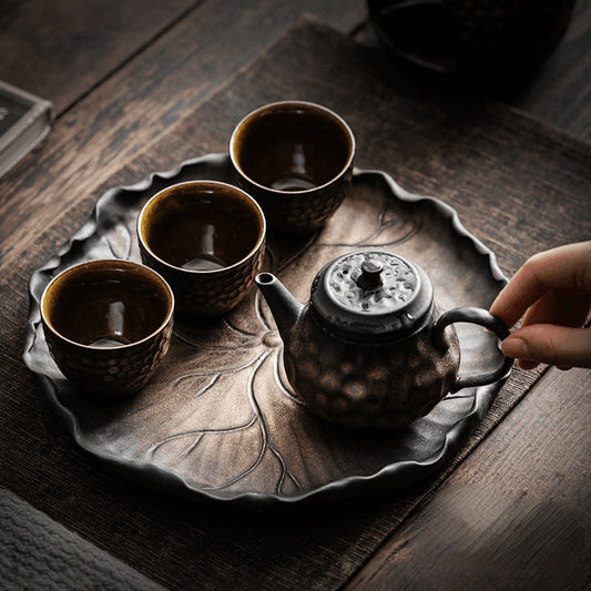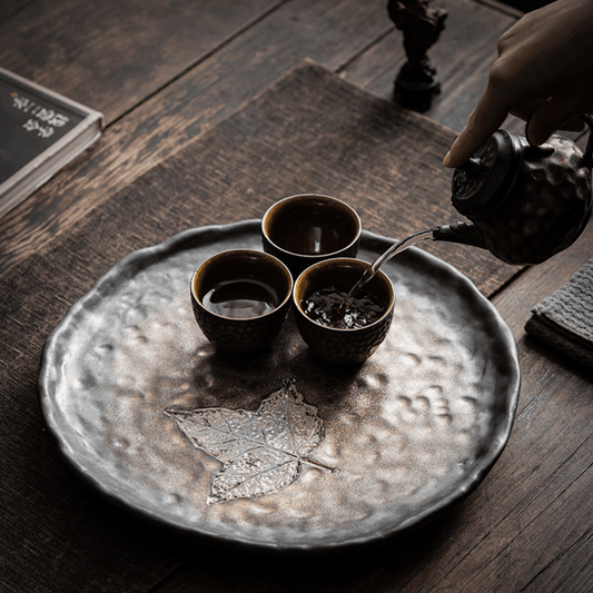 • 材质之选:陶土吸水性佳,适合老茶闷泡;锡盘导热快,利于温杯烫盏;乌金石稳重防磕碰,茶席更显凝练。