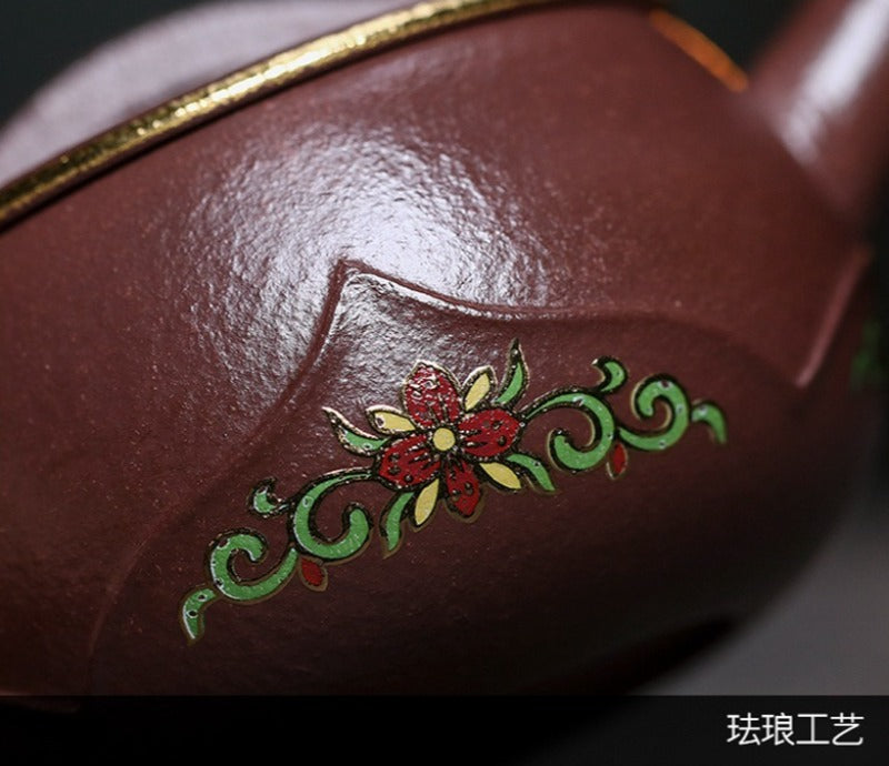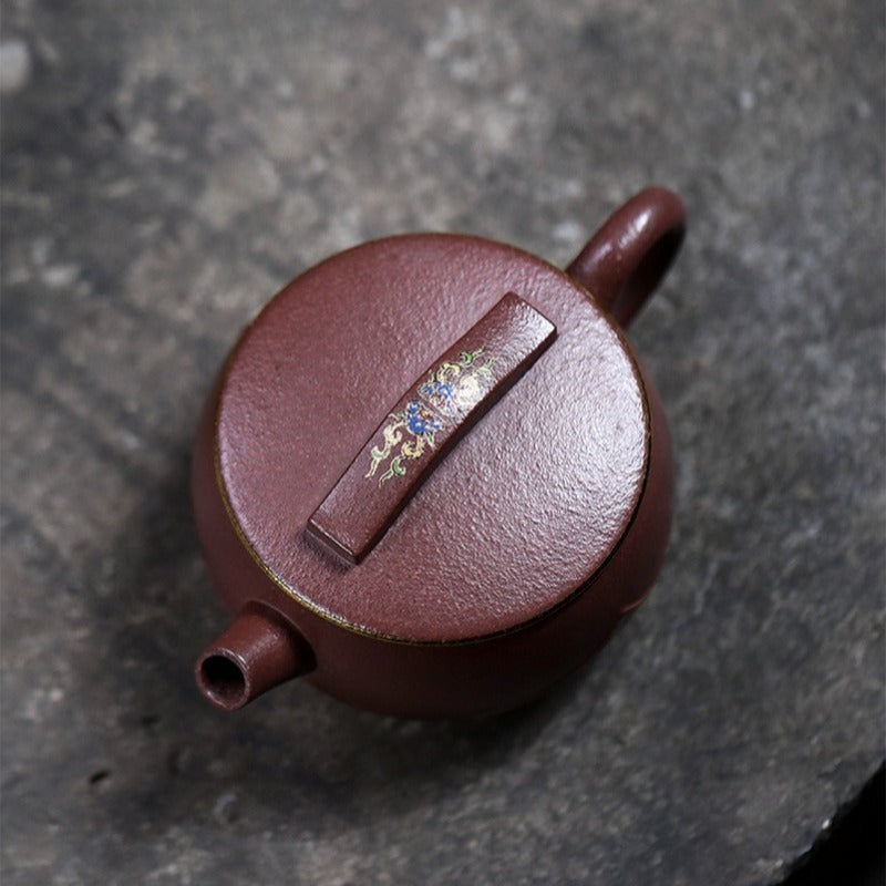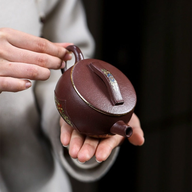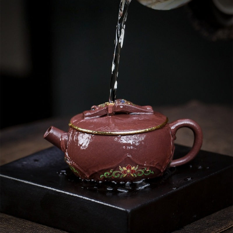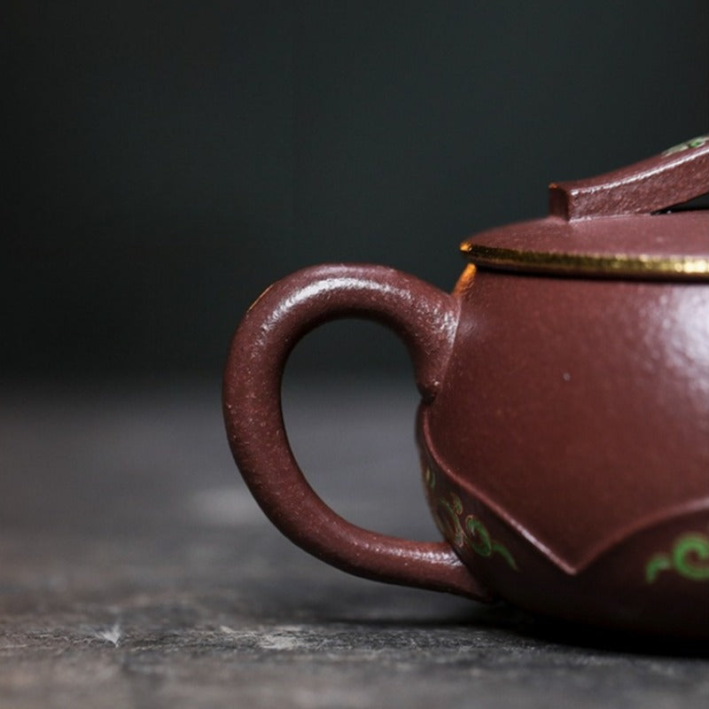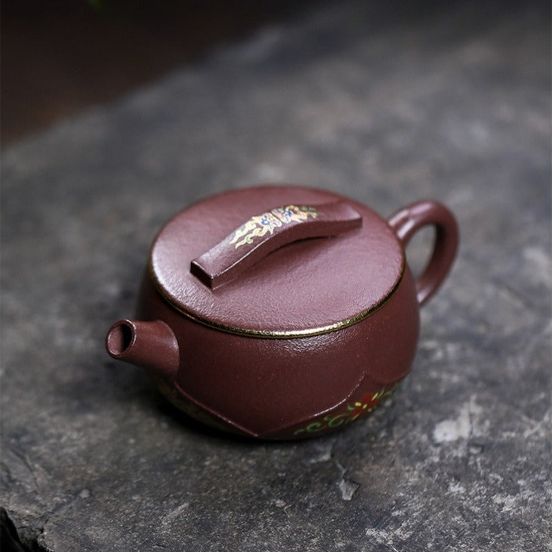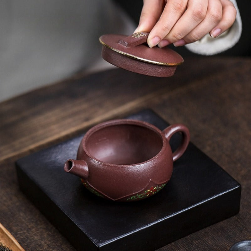 全手工宜兴紫砂茶壶 [竹影莲花] (30目紫泥 - 170ml)