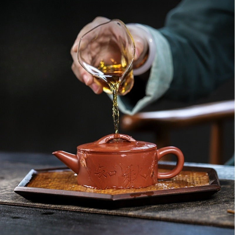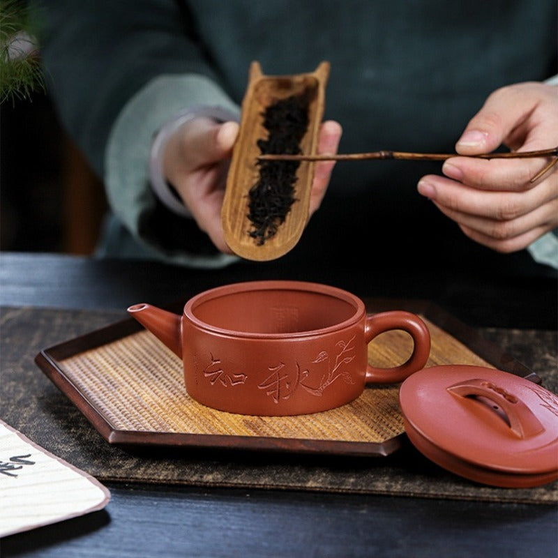 全手工宜兴紫砂茶壶 [知秋汉瓦] (红皮龙 - 210ml)