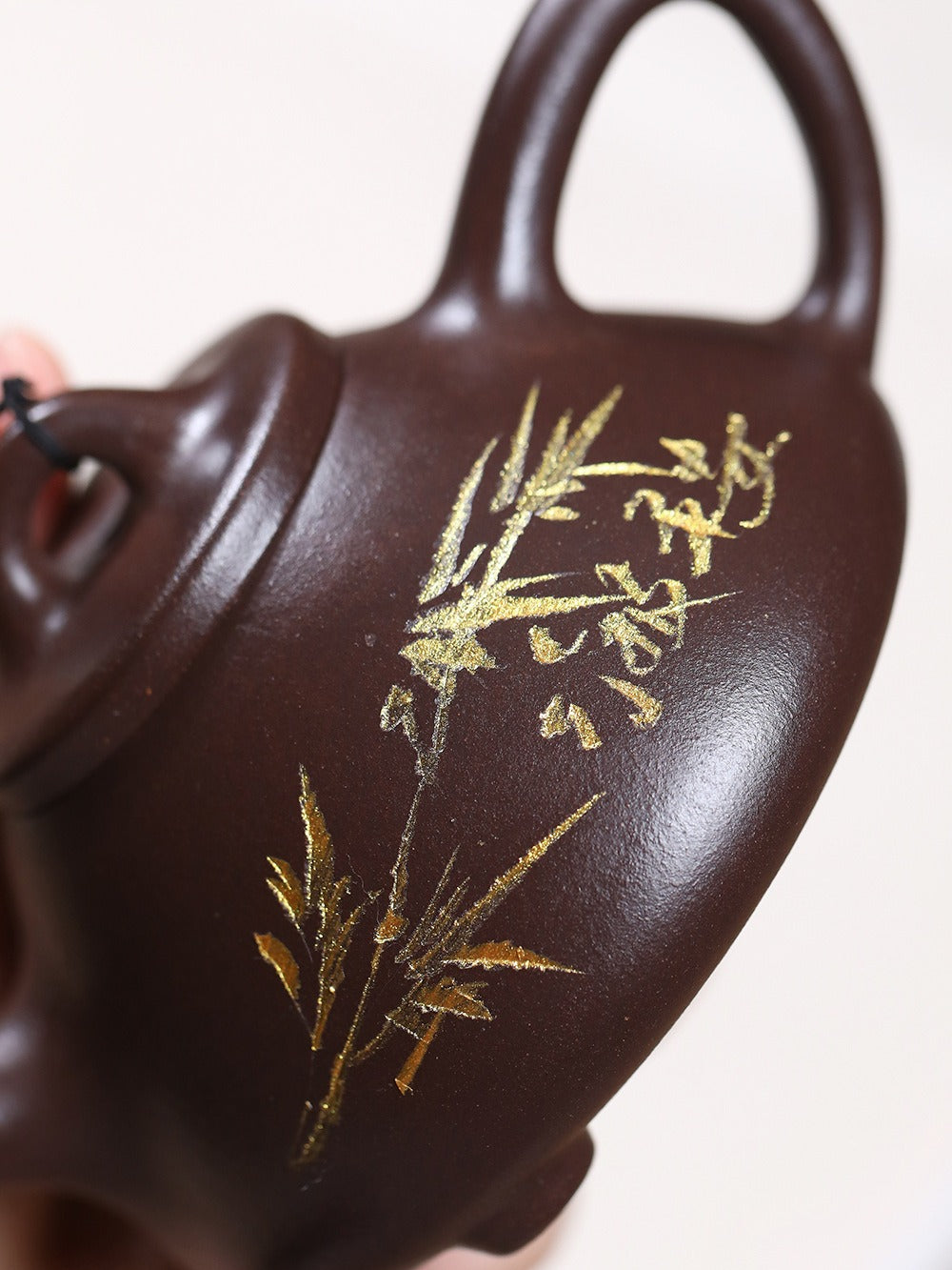 宜兴紫砂茶壶 [竹报平安石瓢] (紫泥 - 190ml)