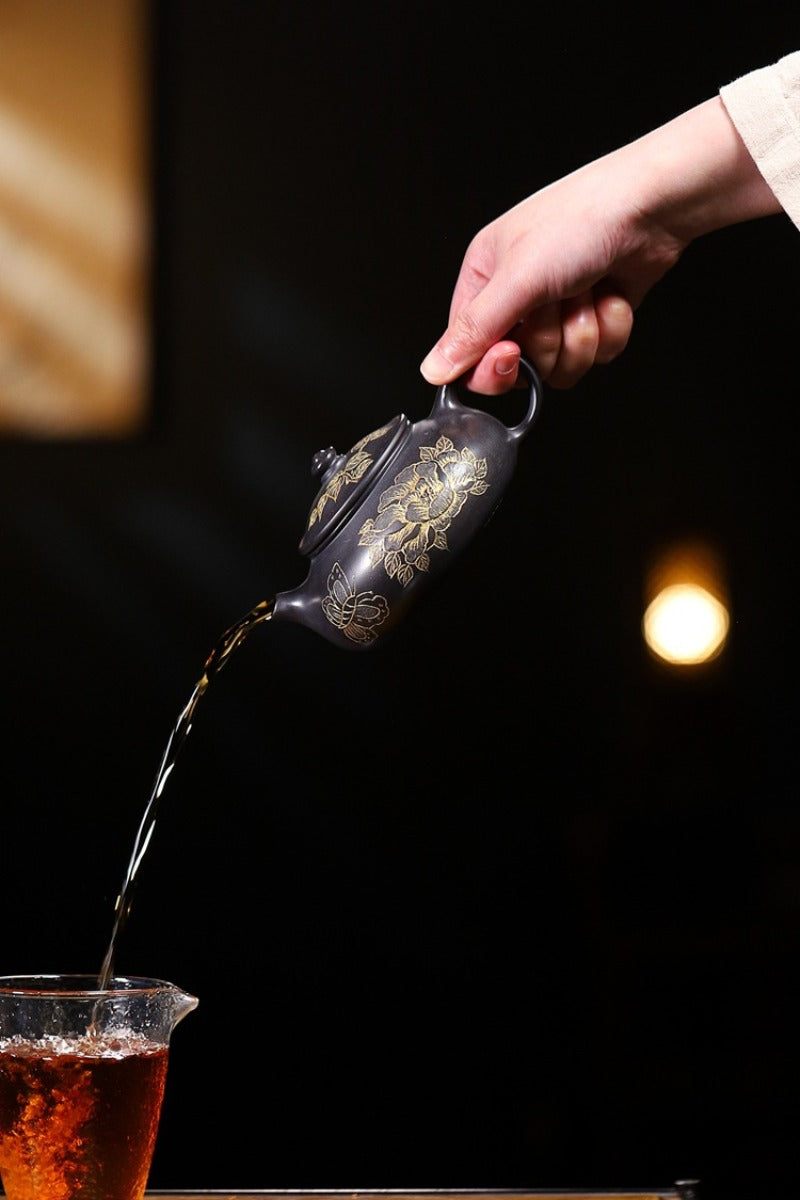 【工艺】半手工制作 - 半手工紫砂壶采用模具初步成型,再由匠人全手工精修细节、明针抛光及刻绘装饰。这种工艺既保证了器型的规整度,又融入了匠人的个人技艺与审美,实现了效率与艺术性的平衡。其好处在于:紫砂双气孔结构带来优异透气性,能激发茶香且隔夜不馊;价格较全手工作品更亲民,同时保持了手工壶的韵味与实用性,是茶人日常使用的理想选择。